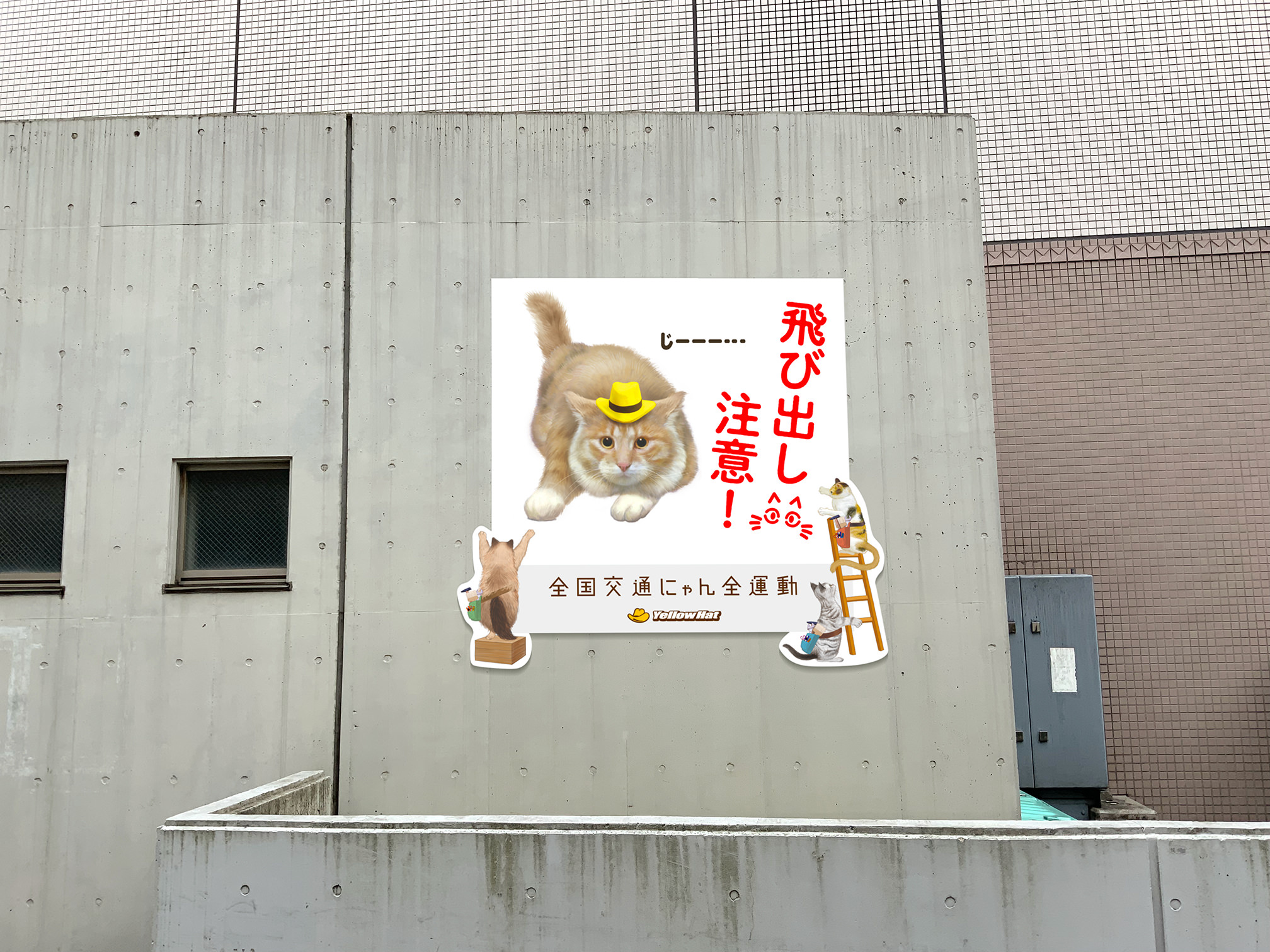 飛び出してくるときの猫の表情や姿勢を再現し、注意喚起効果の高い看板を目指して製作しました。