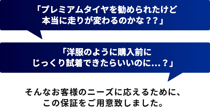 ※プレミアムタイヤ満足保証 保証書をお渡しします。レシートと合わせて保管ください。